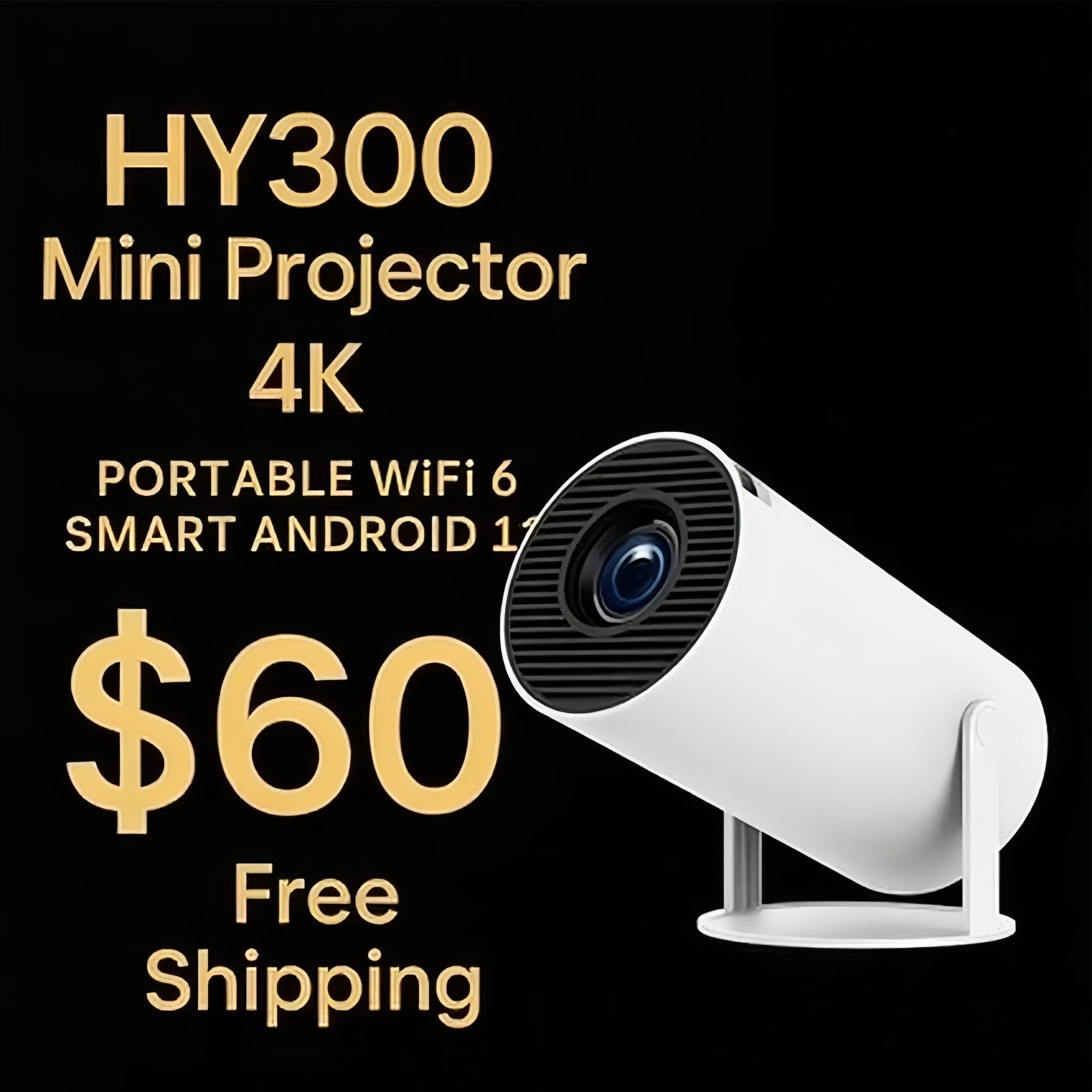 HY300 Mini Projector 4K – Portable WiFi 6 Smart Android 11